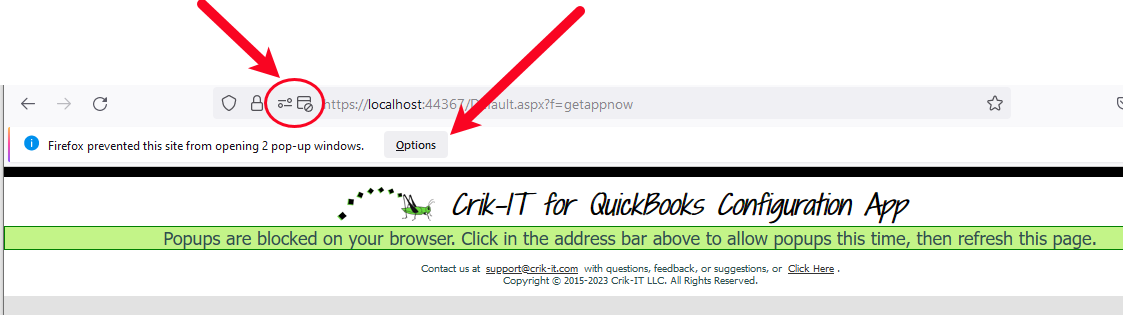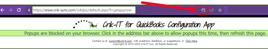 When signing up for a free trial of the Crik-IT Portal for QuickBooks, if your browser is configured to block pop-ups, the sign-up process will be interrupted. But, have no fear, this article tells you how to get beyond this temporary obstacle!