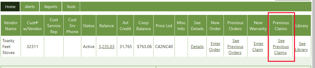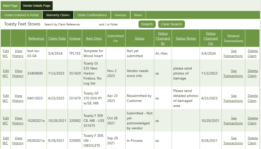 Now you're on the Details page, in the Warranty Claims tab, where you can see all the warranty claims that have been entered into Crik-IT previously. Ta da!