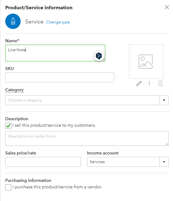 Note that if you set the item up as a Service, you must have configured your portal to sync Service type items from QuickBooks to the portal.
