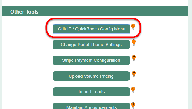 Then click on the "Crik-IT / QuickBooks Config Menu" button in the Other Tools section.